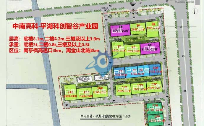 2、项目总体量为1000亩,首期50亩,共规划18栋独栋砖混厂房,50年工业产权;总建面4.3万方,目前剩余2124.11㎡(一套);